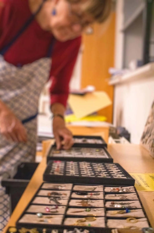 Når vi tænker på smykkematerialer, tænker mange kun på guld og sølv, men der findes mange flere. På grund af prisen arbejder vi ikke i guld, men der er mulighed for at lave smykker i sølv, bronze, kobber, messing, titan, plexiglas, træ, sten og perler.
