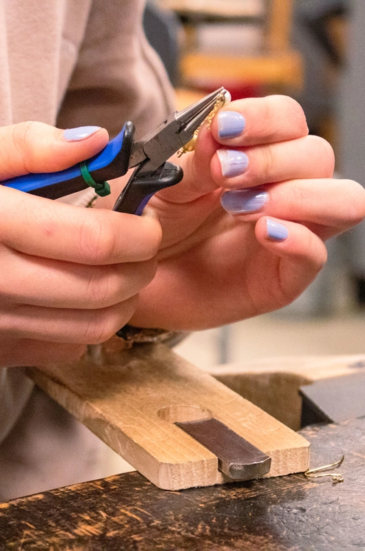 Det at fremstille smykker kræver selvfølgelig, at du behersker forskellige teknikker - det lærer du hen ad vejen. Forskelligt smykkeværktøj skal der også bruges - det har Ungdomsskolen.